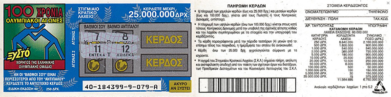 ![]() 1996 Greek lottery ticket |